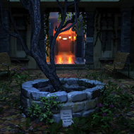 • First-person exploration in a seemingly peaceful courtyard setting